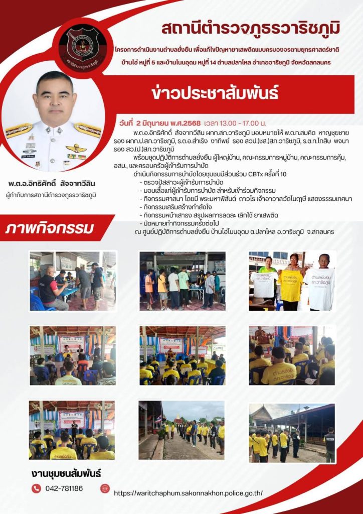 มอบเสื้อแด่ผู้เข้าร่วมกิจกรรมตำบลบำบัด 2 มิถุนายน 2025 โดย waritchaphum / ข่าวประชาสัมพันธ์,งานป้องกันปราบปราม เมื่อ วันที่ 2 มิถุนายน 2568 เวลา 13.30 น. พ.ต.อ.อิทธิศักดิ์ สัจจาทวีสิน ผกก.สภ.วาริชภูมิ พร้อมชุดปฏิิบัติการตำบลยั่งยืนฯ ได้มอบเสื้อแด่ผู้เข้าร่วมกิจกรรม