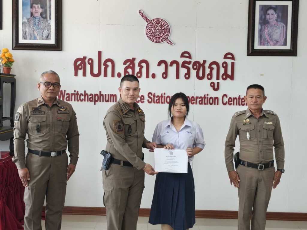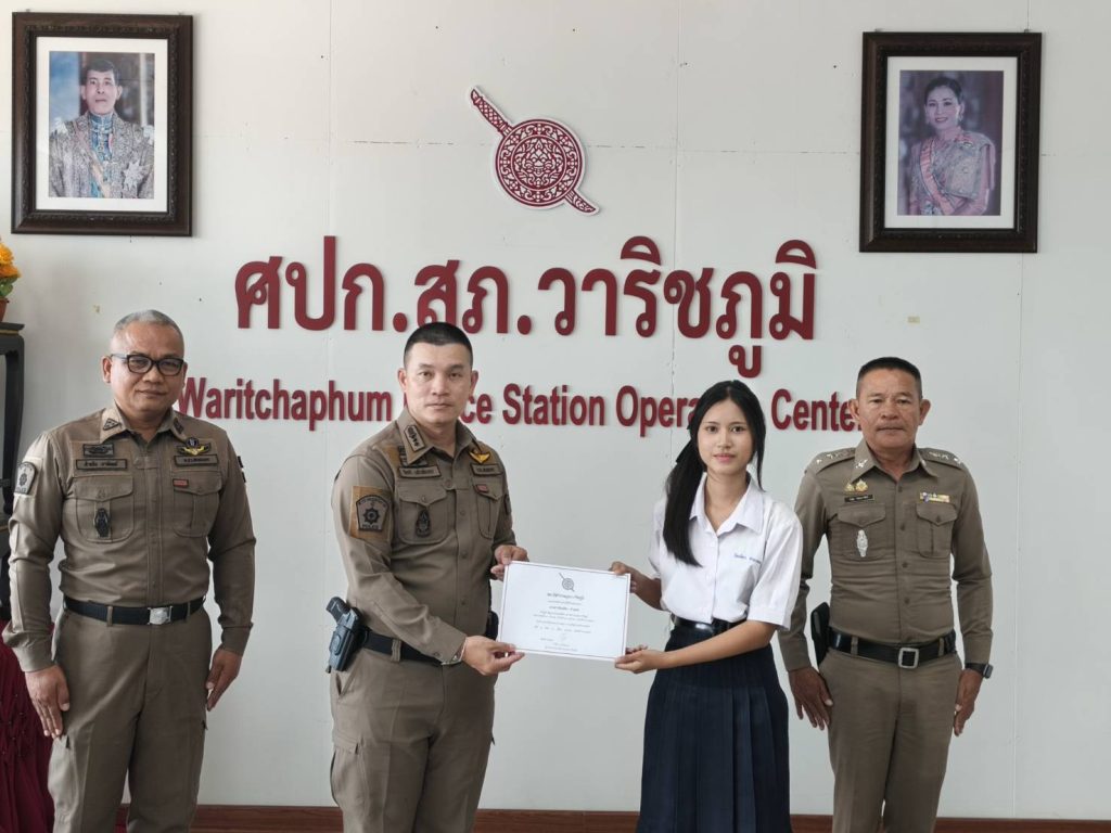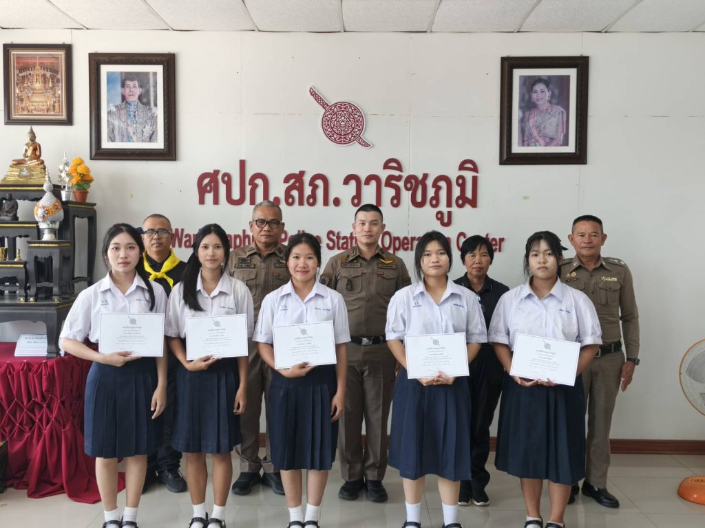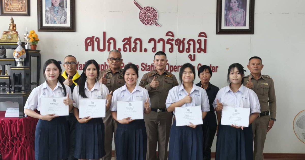 มอบใบประกาศประสบการณ์การฝึกงานในสถานีตำรวจภูธรวาริชภูมิ 10 เมษายน 2026 โดย waritchaphum / ข่าวภารกิจผู้บังคับบัญชา,กิจกรรมผู้บังคับบัญชา ภายใน,ข่าวประชาสัมพันธ์,ข่าวฝากประชาสัมพันธ์,ข่าวภารกิจผู้บังคับบัญชา 10 เมษายน 2569 เวลา 10.30 น. พ.ต.อ.กิตติ แก้วทินกร ผกก.สภ.วาริชภูมิ ได้มอบบประกาศผู้มีประสบการณ์ในการฝึกงานร่วม จนท.สภ.วาริชภูมิ แด่น้องนักศึกษาโรงเรียนมัธยมวาริชภูมิ