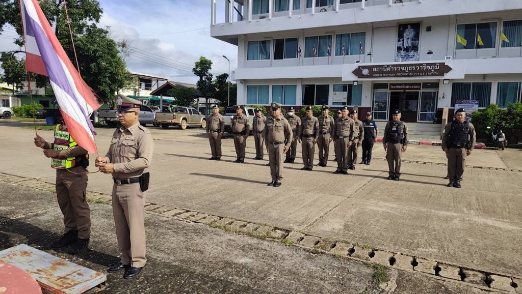 เคารพธงชาติ สวดมนต์ไหว้พระ กล่าวบทปลงใจ กล่าวอุดมคติตำรวจ 20 สิงหาคม 2025 โดย waritchaphum / ข่าวจัดซื้อจัดจ้าง,งานธุรการและกำลังพล,ไม่มีหมวดหมู่ 20 สิงหาคม 2568 พ.ต.อ.อิทธิศักดิ์ สัจจทวีวสิน ผกก.สภ.วาริชภูมิ พร้อม ขกร.ร่วมกันเคารพธงชาติ สวดมนต์ไหว้พระ กล่าวบท