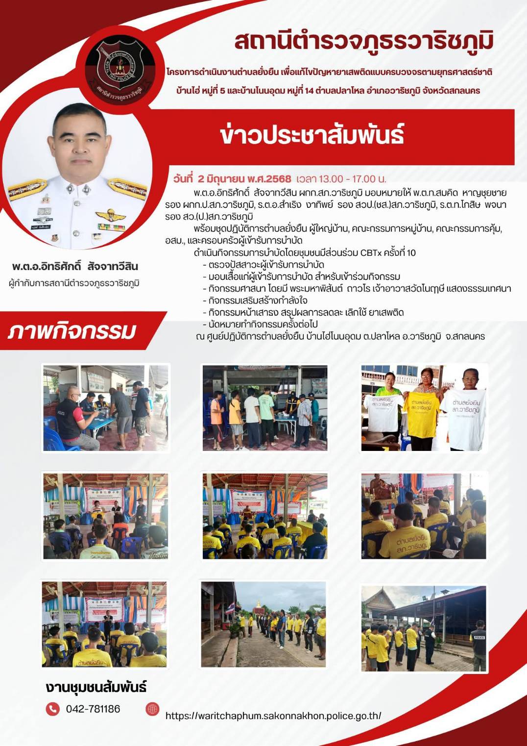เมื่อ วันที่ 2 มิถุนายน 2568 เวลา 13.30 น. พ.ต.อ.อิทธิศักดิ์ สัจจาทวีสิน ผกก.สภ.วาริชภูมิ พร้อมชุดปฏ