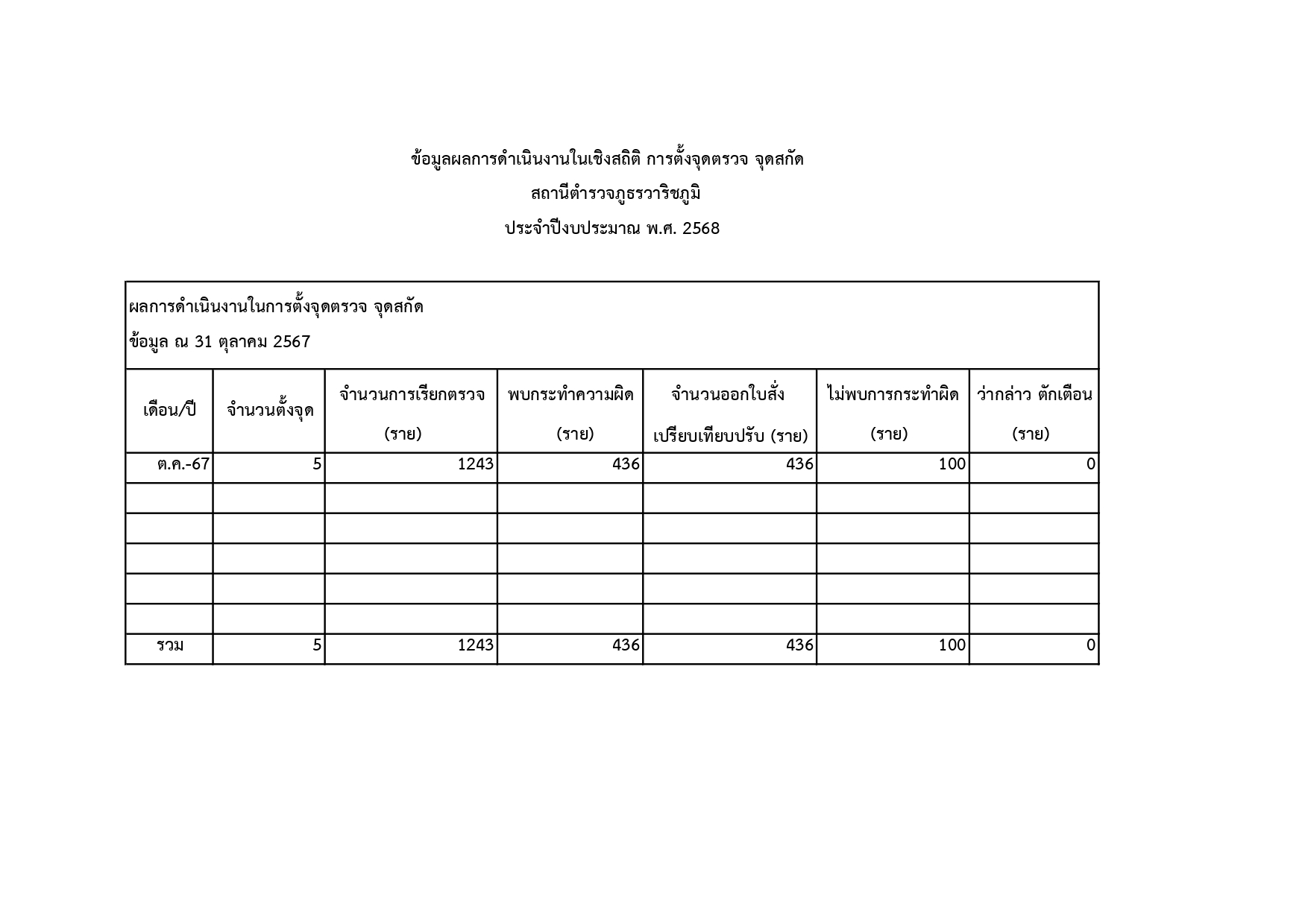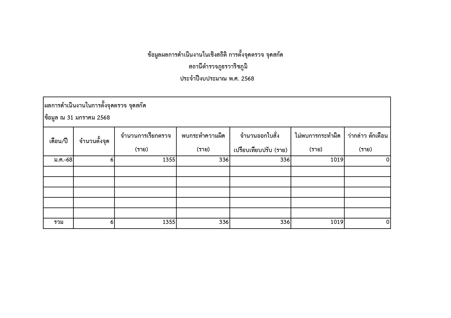 สถิติการตั้งจุดตรวจ จุดสกัด
